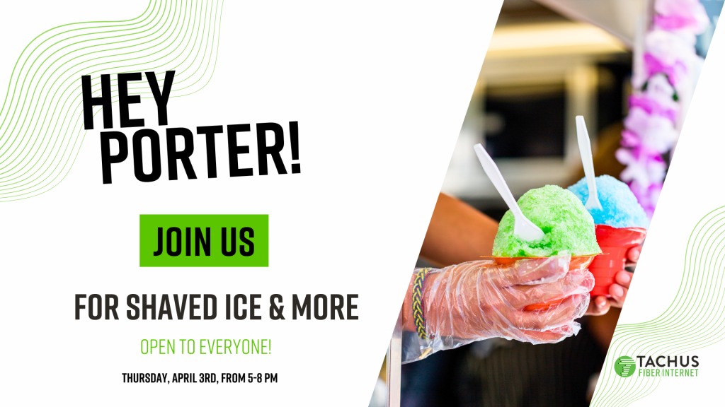 A message from Tachus: Come out to this fun event happening at Golden Trails Park. Stop by for complimentary food from Texas Snow, FREE giveaways and exclusive raffles. Find out why Tachus Fiber Internet is the best choice for high-speed internet. We will be on-site from 5:00 PM to 8:00 PM on April 3rd to answer your questions about our 100% frustration-free fiber internet. Schedule your install on-site and get a FREE install and a FREE month of service.